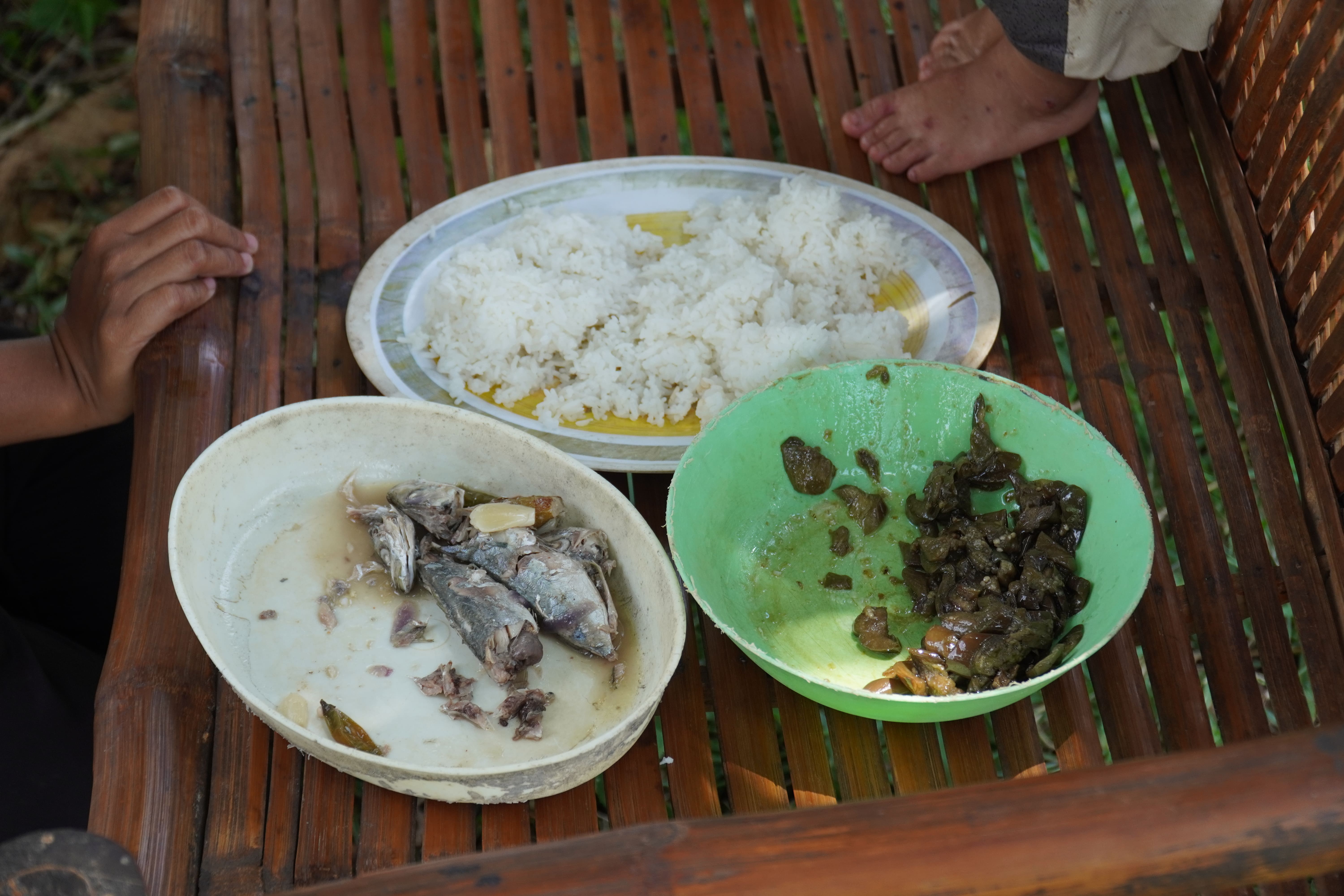 Typical food for an entire family of four in communities in tropical Asia